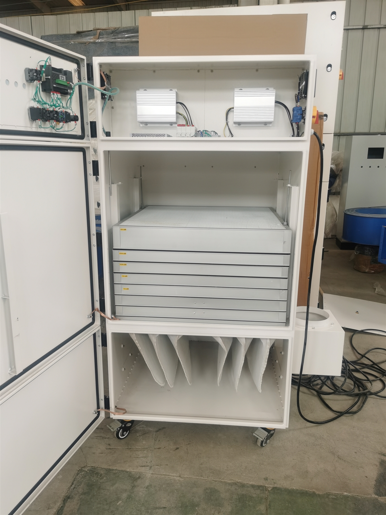 多功能激光切割機,電路板錫焊焊接,激光打標、雕刻,激光切割亞克力、PVC、橡膠、皮料等材質(zhì)的異味煙塵凈化。PLC智能控制面板,10檔調速,實(shí)時(shí)顯示轉速風(fēng)量、負壓等信息,過(guò)濾芯飽和聲光報警。過(guò)濾芯采用抽屜式安裝,方便、省力,多級高效過(guò)濾,達標排放。精密微芯片控制,高靈敏長(cháng)距離遙控,可實(shí)現2米內360°無(wú)死角控制開(kāi)關(guān)機/風(fēng)量調節/定時(shí)關(guān)機等。無(wú)刷直流電機,節能、高轉速、風(fēng)量大、負壓大、噪音低、免維護。